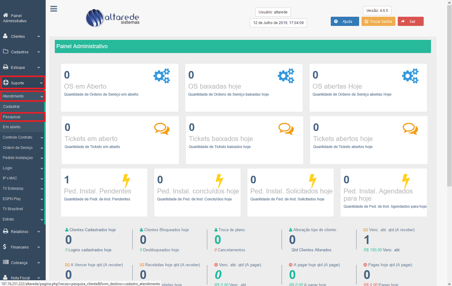 A opção PESQUISAR tem permite fazer uma busca de Tickets registrados no sistema. Você pode usar um ou mais campos para filtrar a busca e localizar o Ticket desejado.