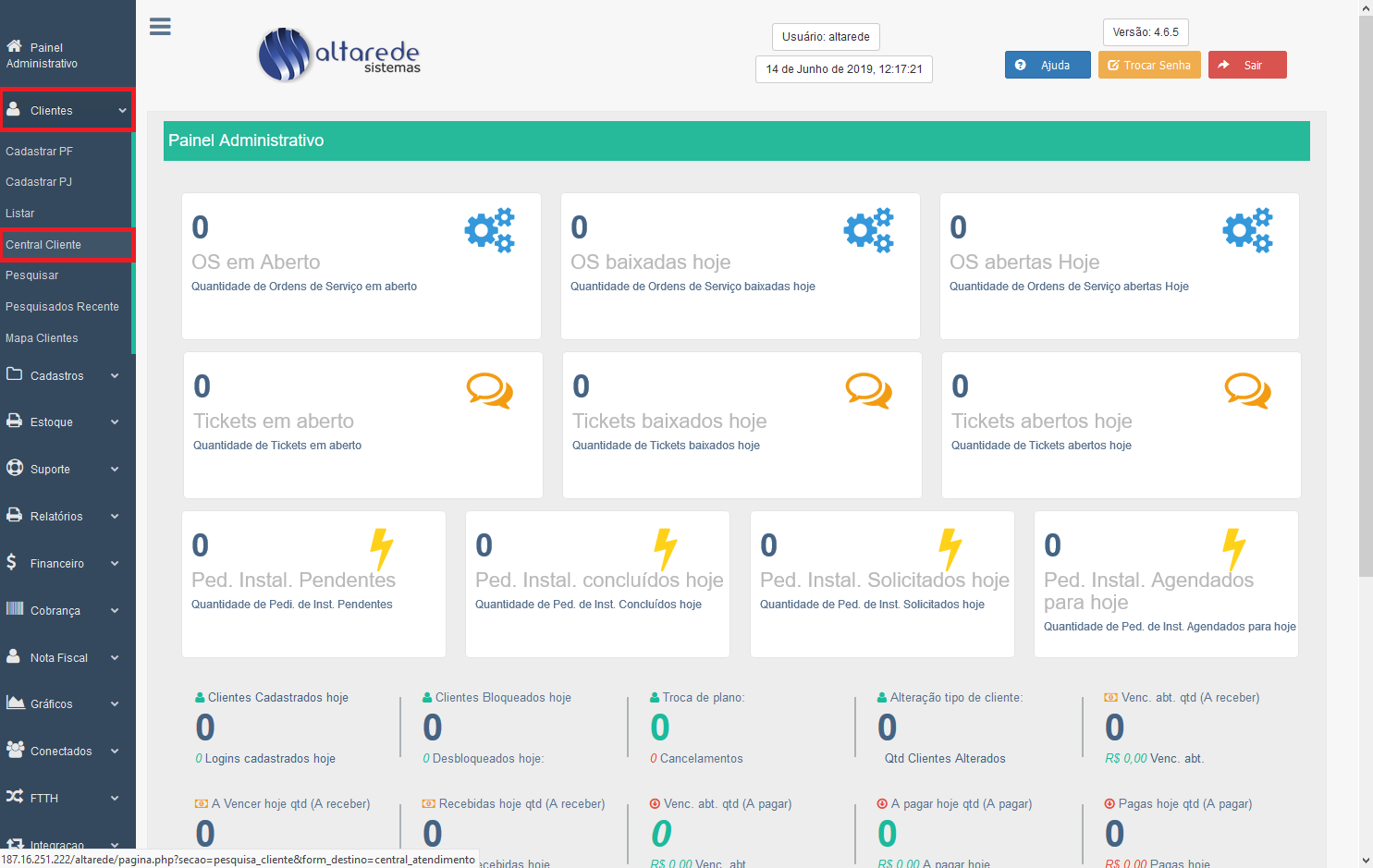 Para Bloquear um login de forma manual basta ir na Barra de Menus e clicar em CLIENTES > CENTRAL CLIENTE